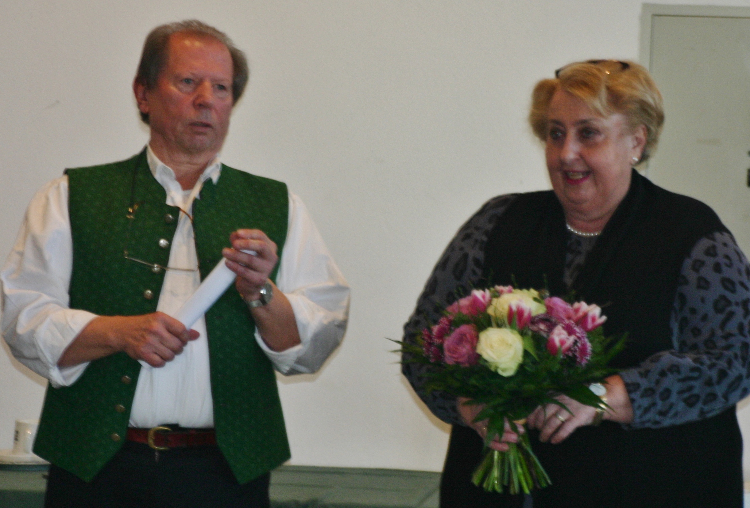 Otto Schwanda, 2. Vorsitzender des Orts-Vereins bedankt sich bei der 1. Vorsitzenden Karin Freiheit für ihren Einsatz und ihr Engagement